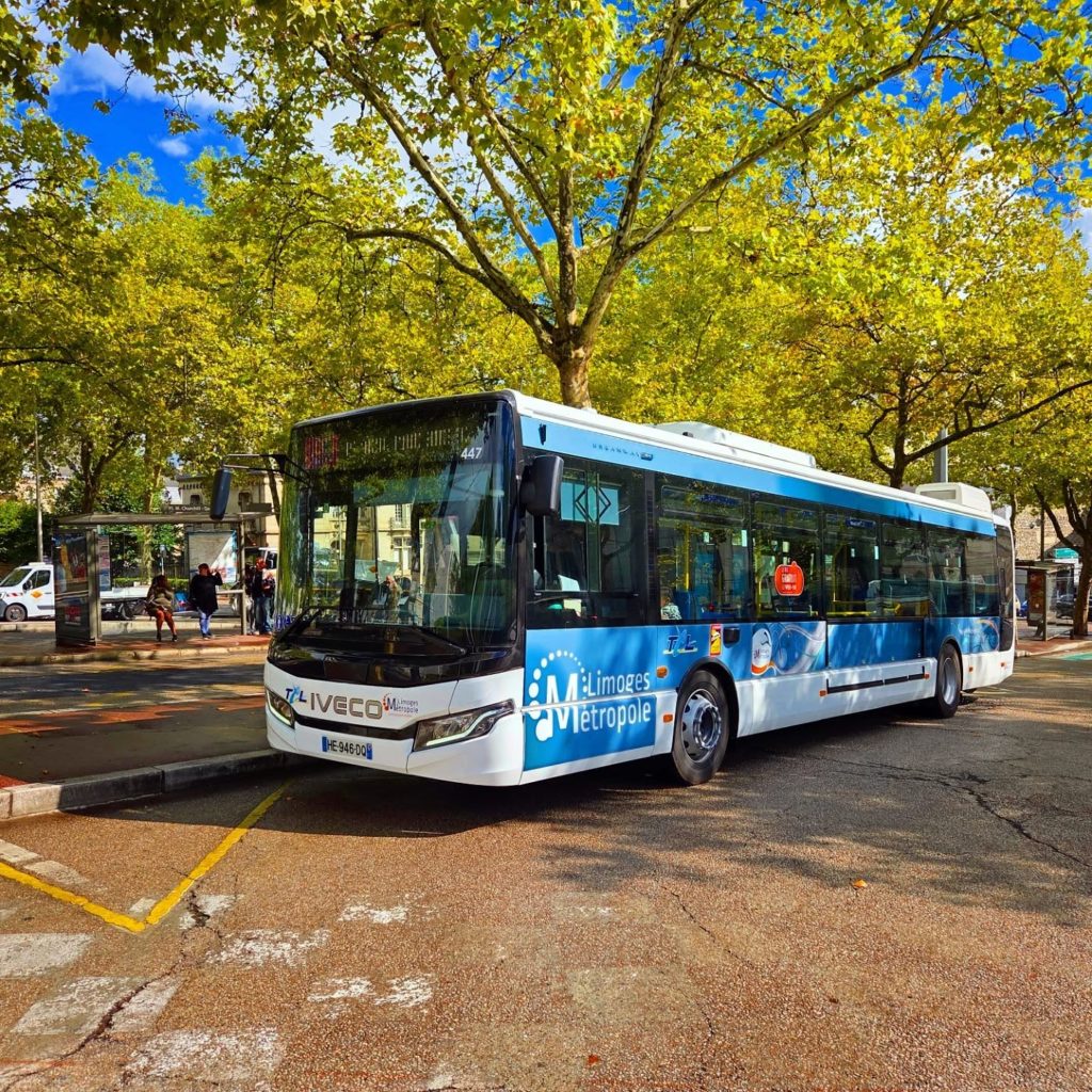 Nouveauté sur le réseau de transport limougeaud qui accueille un tout nouveau véhicule : l’Iveco UrbanWay 12 HVO. Ce bus moderne et élégant fait désormais partie de la flotte, pour le plus grand plaisir des usagers… et des passionnés de transport !