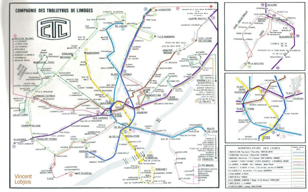 Histoire des Transports : Le Réseau CTL de Limoges (1977-1978) Mémoire du Réseau TCL Plongée dans le plan des trolleybus